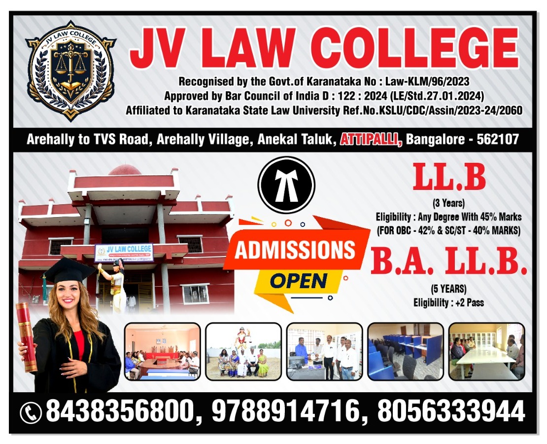A distinguished institution established in 2023 and run by the JV Educational and Charitable Trust. Affiliated to Karnataka State Law University.